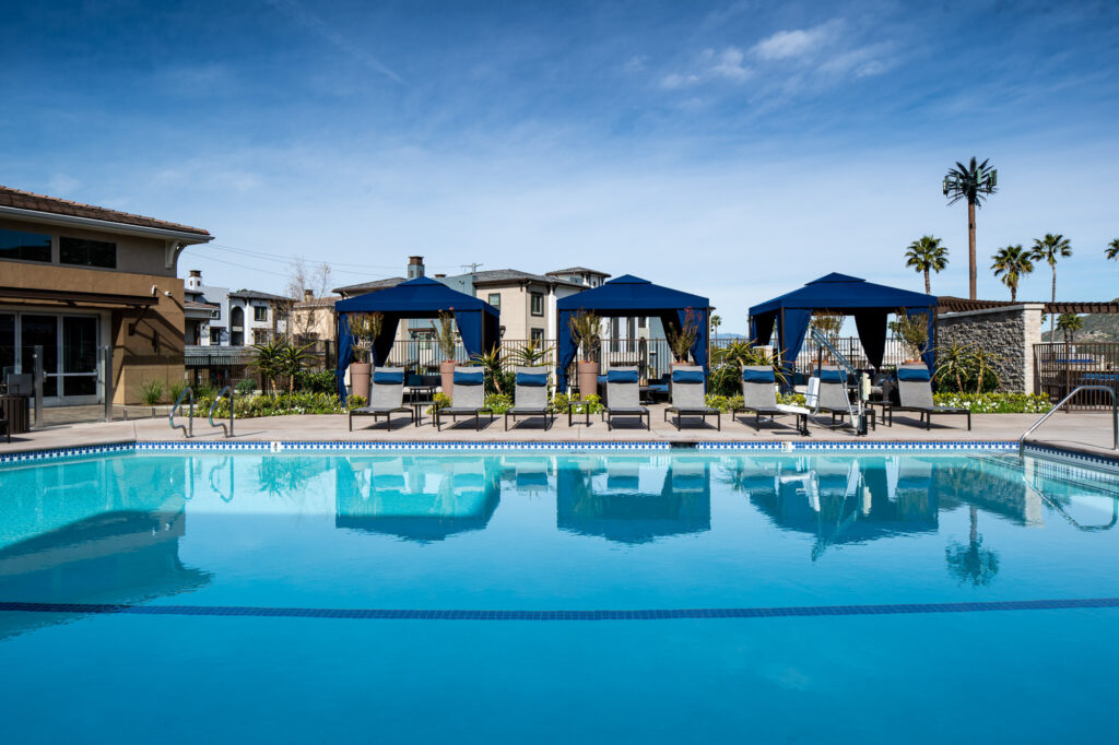Photography includes all common areas, the rental offices, clubhouse, 1-bedroom, 2-bedroom, and 3-bedroom units, resort pool, poolside cabanas, all amenities, conference room, state of the art gym, and twilight photography.